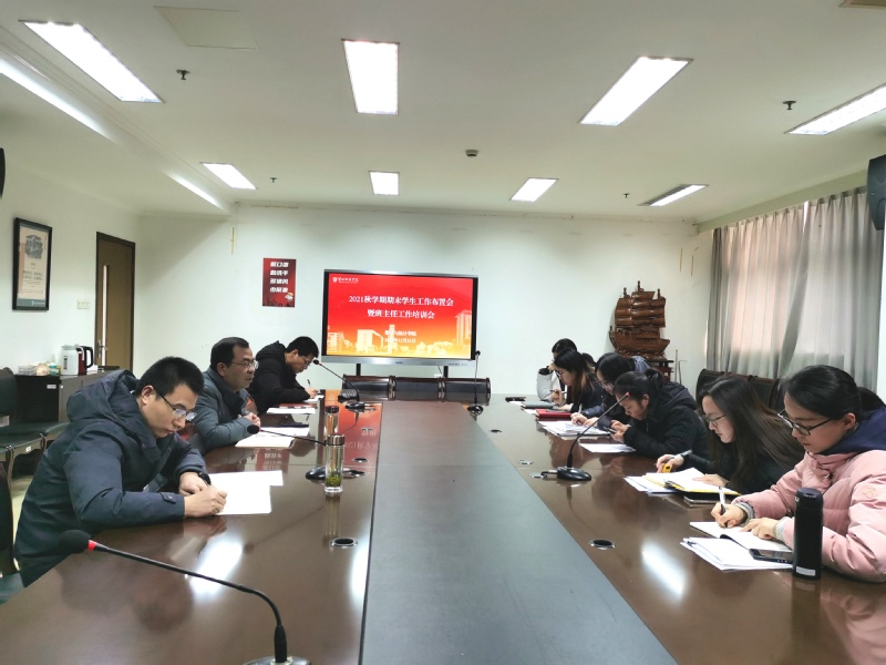 12月22日下午,beat365亚洲体育官方网站在通榆校区主楼八楼会议室召开了2021年秋学期期末员工工作布置会暨班主任工作培训会,公司党委副书记、经理姜海波,党委副书记左飞,辅导员和班主任参加了会议。