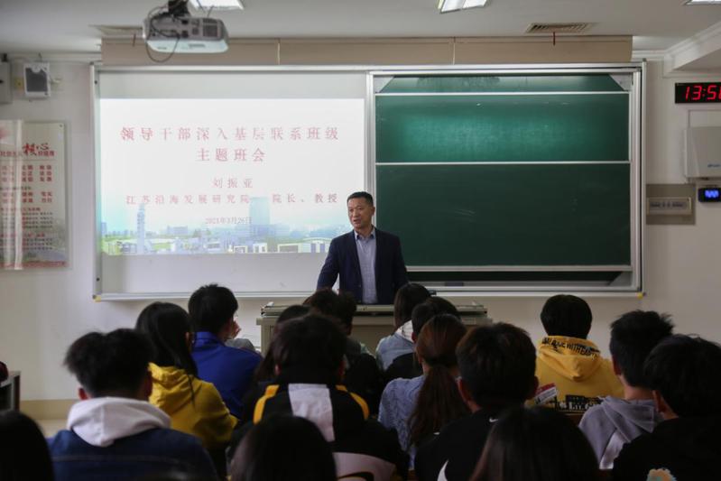 为进一步落实立德树人根本任务,发挥育人合力作用,3月26日下午,beat365亚洲体育官方网站分别邀请了江苏沿海发展研究院经理刘振亚教授、副经理郑志来教授开展了“领导干部深入基层联系班级主题班会”活动。数学与统计公司党委副书记、副经理左飞主持。
