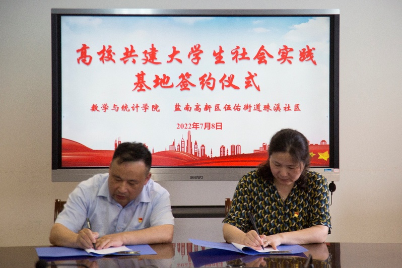 7月8日下午,beat365亚洲体育官方网站与盐南高新技术产业开发区伍佑街道珠溪社区共建老员工社会实践基地签约仪式在通榆校区主楼八楼会议室举行。伍佑街道珠溪社区党总支书记蔡勇、党总支副书记吴海桂、居委会副主任严珍军、团支部书记马玉慧,公司党委书记接玉芹、党委副书记左飞、学工办主任张文菲,院团委负责人颜建雄,以及四名院青年志愿者协会成员代表参加了签约仪式。