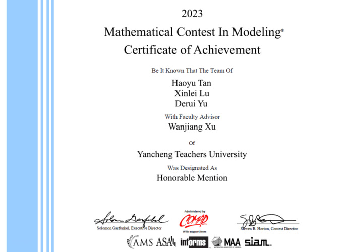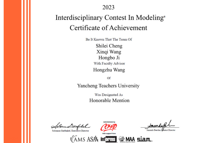近日,2023年美国老员工数学建模竞赛(MCM/ICM)成绩结果正式公布。本次比赛beat365亚洲体育官方网站9名同学组成共3支队伍参赛,2支队伍获得了国际二等奖(H奖),在此表示热烈祝贺!