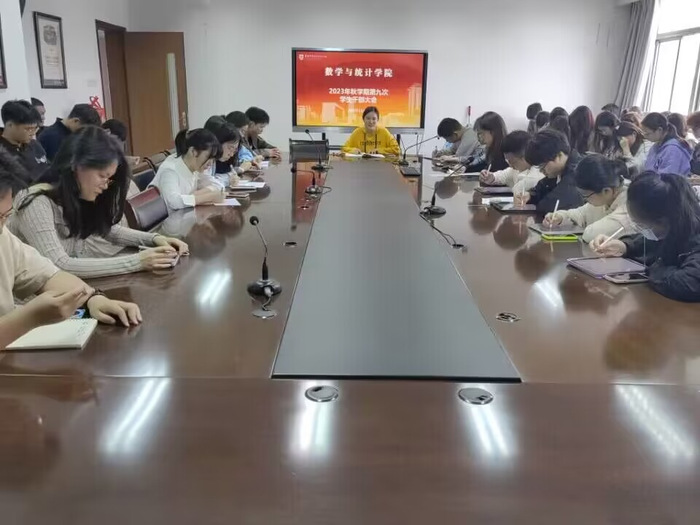 11月4日,beat365亚洲体育官方网站于主楼八楼会议室召开2023秋学期第九次员工干部会议,此次会议由胡菊老师主持,员工会成员及班级主要员工干部参会。