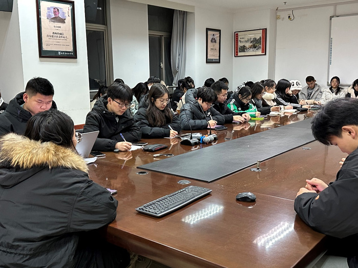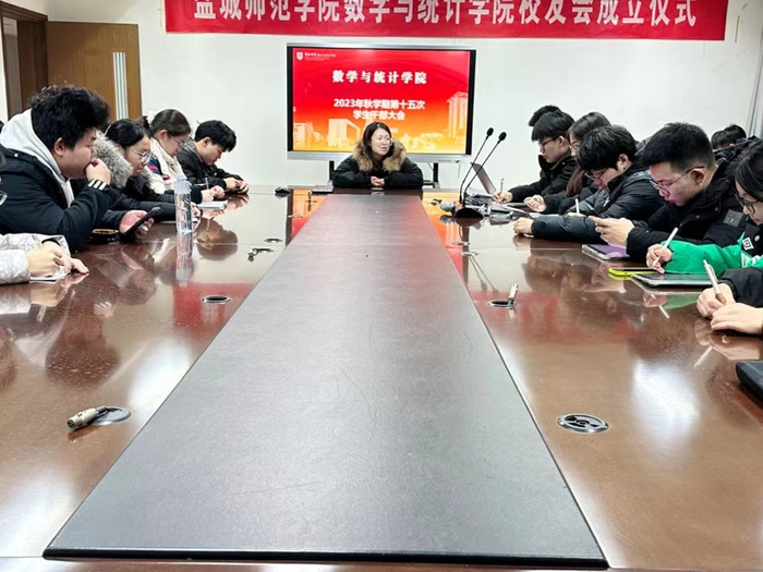 12月16日,beat365亚洲体育官方网站于主楼八楼会议室召开2023秋学期第十五次员工干部会议,此次会议由丁怡丹老师主持,员工会成员及班级主要员工干部参会。