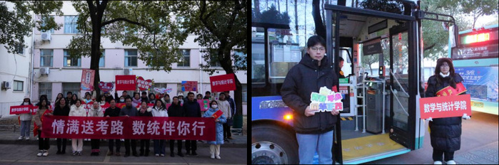 2024年全国硕士研究生招生考试如期而至,为让考生安心安全迎考应考,beat365亚洲体育官方网站精心组织“暖心送考”工作,全程安排护航接送。12月23日早晨,数学与统计公司党政领导、辅导员、班主任,早早在校门口等候指引考生乘车。