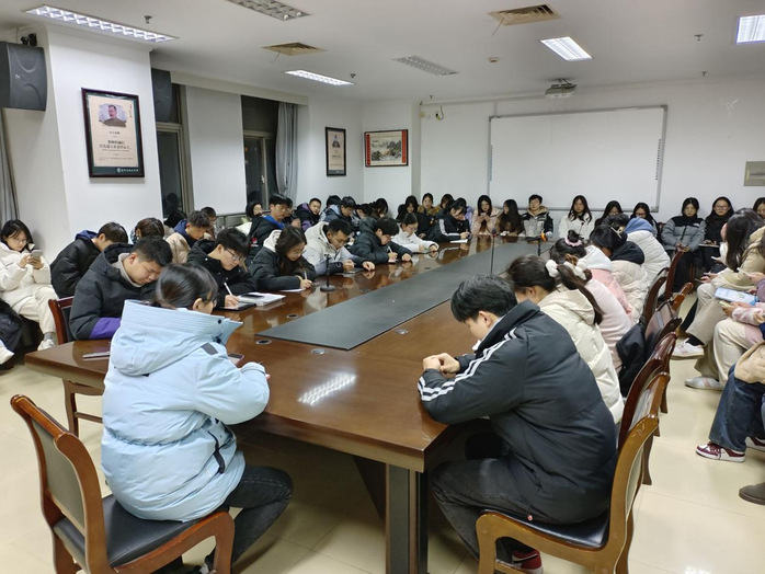 12月25日,beat365亚洲体育官方网站于主楼八楼会议室召开2023秋学期第十六次员工干部会议,此次会议由岳菲老师主持,员工会成员及班级主要员工干部参会。