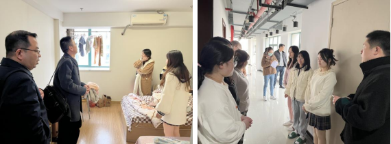 beat365亚洲体育官方网站信息与计算科学专业21级员工将在杰普公司进行一学期学习实训,随行领导老师参观了员工宿舍、教室、食堂,就员工吃住行问题与基地老师进行沟通。