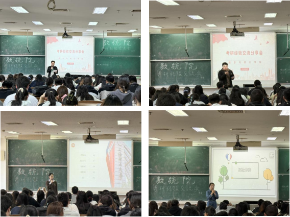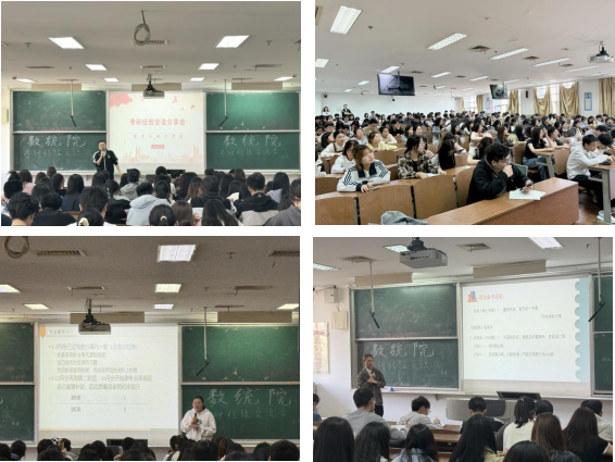 在经验分享环节,辅导员王苏生老师结合当前就业形势,强调“选择与努力并重”,建议同学们科学规划、提升综合素质,保持积极心态。6位成功考取研究生的优秀学子结合自身备考经历,从高效学习方法、科学时间规划和实战备考技巧三个维度展开详细讲解。分享尾声,学长学姐们寄语在场同学:备考路上,贵在持之以恒,既要坚定目标,也要保持良好心态。