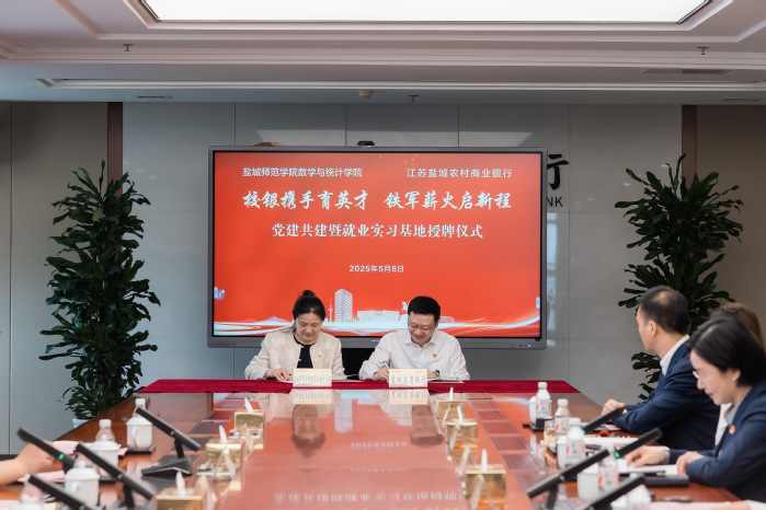 接玉芹表示,此次与盐城农商银行开展党建共建和实习就业基地建设,为双方提供了广阔的合作空间。一是在党建共建方面,加强党组织之间的交流互动。通过联合开展主题党日活动,丰富党建活动形式;围绕金融与数学学科的融合发展,开展党建引领下的课题研究。二是在实习就业基地建设方面,为员工提供更多优质的实习岗位。三是在人才培养方案制定、课程建设等方面开展合作,根据金融行业的需求,优化人才培养模式,培养出更符合市场需求的高素质人才。
