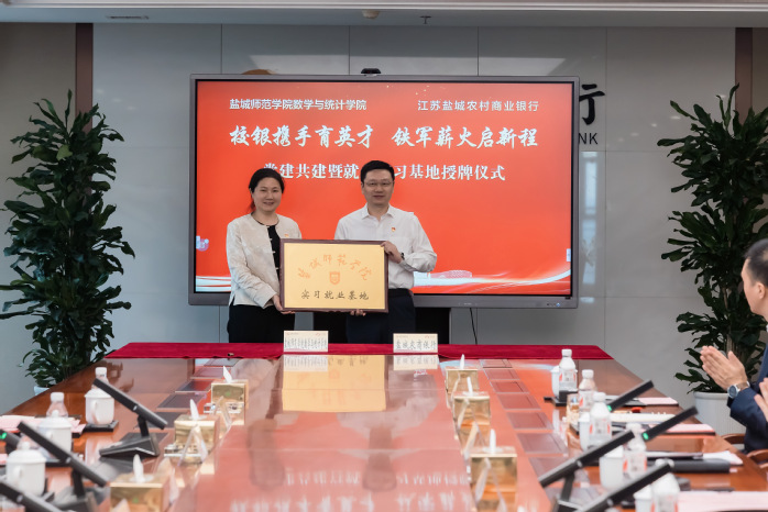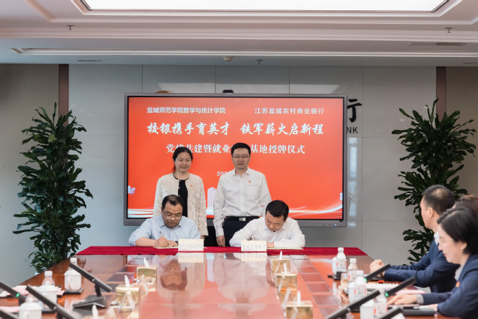 5月8日上午,beat365亚洲体育官方网站与盐城农商银行“校银携手育英才 铁军薪火启新程”党建共建暨实习就业基地授牌仪式在盐城农商银行总部隆重举行。公司党委书记接玉芹,党委副书记左飞,盐城农商银行党委书记、董事长许闯,党委副书记、行长徐键等出席活动,会议由盐城农商银行工会主席,党委委员、副行长杨书琴主持。