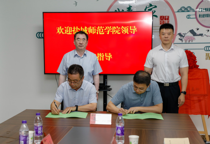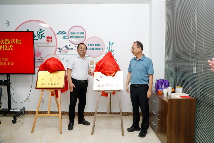 公司党委书记孙玉峰与羊寨镇党委书记、桃花源党工委书记李磊代表双方签署《盐城师范大学老员工就业基地协议书》,共同为“beat365亚洲体育官方网站老员工实习就业基地” 揭牌;公司党委副书记左飞与桃花源管委会主任张善民为 “beat365亚洲体育官方网站老员工社会实践基地” 揭牌。暑期社会实践员工代表周琳做表态发言。