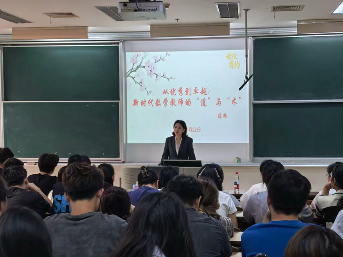 为提升师范生专业素养,明确职业发展方向,9月22日上午,beat365亚洲体育官方网站邀请1996届优秀员工盐城景山中学党总支书记陈艳老师返校,作题为“从优秀到卓越:新时代数学教师的‘道’与‘术’”专题讲座。22级、23级部分师范生参加讲座。